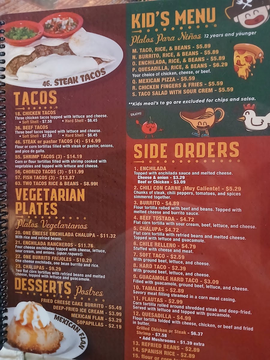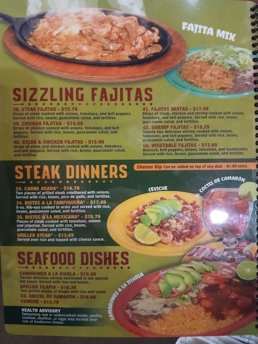 Expect familiar favorites like hearty fajitas, soft tacos filled with seasoned meat, and lighter options such as shrimp ceviche to enjoy alongside fresh, hot chips. The menu is designed for those moments when you want a comforting meal that feels thoughtfully prepared but never complicated, inviting you to savor familiar tastes in a straightforward way.